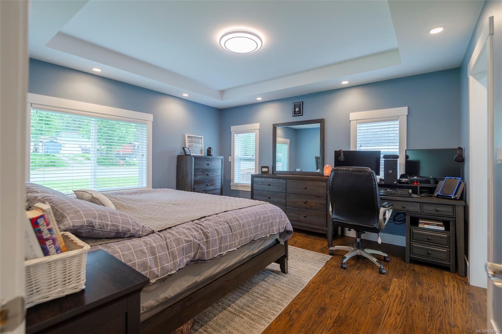 The main floor welcomes you with an open-concept layout, elegant tray ceilings, and the year-round comfort of a heat pump. Stylish laminate flooring runs throughout the main living areas, with ceramic tile in bathrooms and durable vinyl in select rooms. Energy-efficient lighting, appliances, and recessed lighting create a warm and inviting atmosphere.